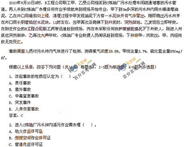 解析:参见旧教材《安全生产管理知识》P197-198,《安全生产技术》P87。