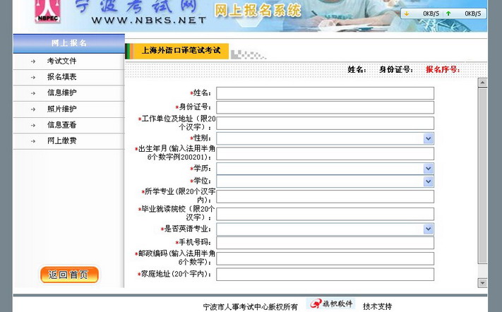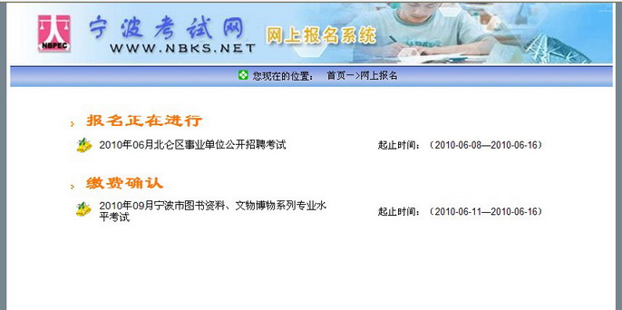 第一步:登陆考试系统,点击宁波考试网“网上报名”栏目