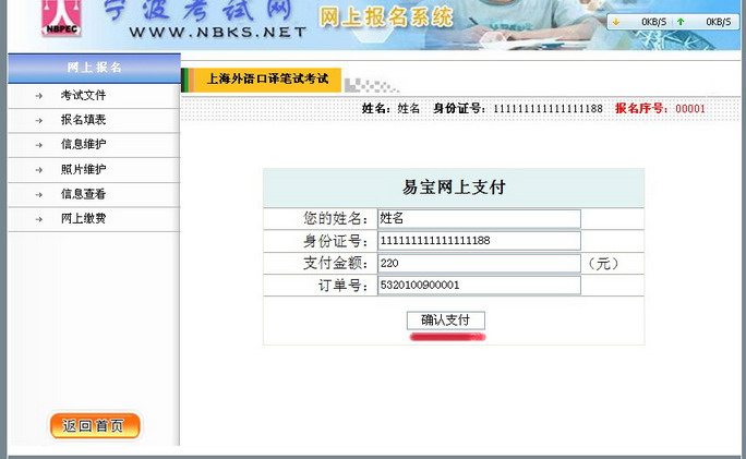 1、看完网上支付说明后点击最下面的“易宝支付”按钮