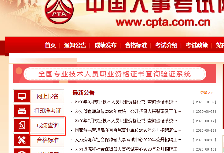 答:根据人社部公布的相关考务安排,考试成绩将在2020年11月底前下发,届时报考人员可登录中国人事考试网(网址为http://www.cpta.com.cn)成绩查询栏目查询。