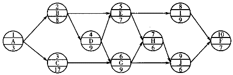| 正确答案:B 解题思路:关键路线是持续时间最长的线路,因此,先列举网络的线路,再计算各线路的时间,时间最长的就是关键路线。本题的线路包括:ABEIF,ABEHJF,ABDEIF,ABDEHJF,ABDGHJF,ABDGJF,ACGHJF,ACGJF,它们的持续时间分别为:34,37,43,46,48,42,48,42。当然,本题也可以按教材的解法对整个网络进行计算,但这样太麻烦,而且没有必要。 |