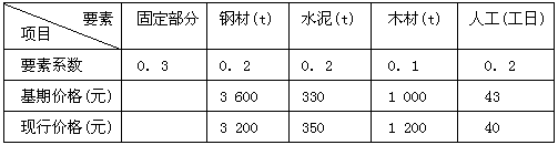 | 正确答案:C 解题思路:本题考核点丸建筑安装工程费用的动态结算。P=300×(0.3+0.2×3200/3600+0.2×350/330+0.1×1200/1000+0.2×40/43)=298.74万元 |