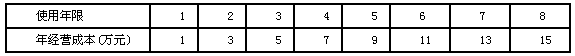 34.某设备原始价值为10万元,无论使用多少年,期末设备的残值均为1万元,设备的年使用费见下表。则该设备的静态经济寿命为( )年。![]() |