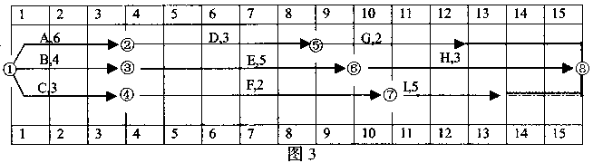 | 11.背景: 某工程承包商按照甲方代表批准的时标网络计划组织施工。 时标网络计划如下图3所示,图中箭线上方字母为工作名称,数据为每周计划费用。在工程进展到第6周末检查的工程实际进度为:工作D完成了4/5工作量,工作E完成了1/3工作量,工作F完成了3/7的工作量。 在工程进展到第11周末检查的工程实际进度为:工作G完成了1,2的工作量,工作H完成了,3的工作量,工作I完成了2/3的工作量。 ![]() 问题: (1)在图中标出第6周末、第11周末的实际进度前锋线。 (2)完成该项目第1周到第11周末费用数据统计表,其中已完工程实际费用累积值已给出,见表5。 ![]() (3)分析第6周末、第11周末的费用偏差及费用绩效。 (4)分析第6周末、第1周末的进度偏差及进度绩效。 |