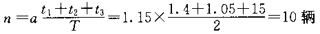 | 正确答案: (1)施工拌合站最近的第一个600m施工段时,车辆平均运距为700m。 重载动程时间t1=0.7÷30×60=1.4min 空载动程时间t2=0.7÷40×60=1.05min 在工地卸料和等待的总时间t3=5+2×5=15min。 拌制一车混合料所需的时间T=60×15÷450=2min。 根据公式 ![]() (2)施工拌合站最远的最后一个600m施工段时,车辆平均运距为15100m 重载动程时间t1=15.1÷30×60=30.2min 空载动程时间t2=15.1÷40×60=22.65min 在丁地卸料和等待的总时间t3=5+2×5=15min 拌制一车混台料所需的时间T=60×15÷450=2min 根据公式 ![]() 所以因根据施工进展安排运输车辆,最近时最少可以配置10辆,最后一个施工段落应配置39辆。 |