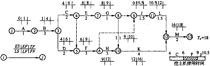 11.某水利水电工程项目的原施工进度网络计划(双代号)如图1F400000-1所示。该工程总工期为18个月。在上述网络计划中,工作C、F、J三项工作均为土方工程,土方工程量分别为7000m 、10000m 、6000m ,共计23000m ,土方单价为15元/m 。合同中规定,土方工程量增加超出原估算工程量25%时,新的土方单价可从原来的15元/m 下降13元/m 。合同约定每台施工机械闲置1天为800元,每月以30天计;C、F、J实际工作量与计划工作量相同。施工中发生如下事件: 事件1:施工中,由于施工单位施工设备调度原因,C、F、J工作需使用同一台挖土机先后施工。 事件2:在工程按计划进行4个月后(已完成A、B两项工作的施工),项目法人提出增加一项新的土方工程N,该项工作要求在F工作结束以后开始,并在G工作开始前完成,以保证G工作在E和N工作完成后开始施工。根据施工单位提出并经监理机构审核批复,该项N工作的土方工程量约为9000m ,施工时间需要3个月。事件3:经监理机构批准,新增加的土方工程N使用与C、F、J工作同一台挖土机施工 ![]() 图1F400000-1 问题: (1)在不改变各工作历时的情况下,发生事件1后,施工单位如何调整计划,使设备闲置时间最少,且满足计划工期要求? (2)按事件2新增加一项新的土方工程N后,土方工程的总费用应为多少? (3)土方工程N完成后,施工单位提出如下索赔: ①增加土方工程施工费用13.5万元; ②由于增加土方工程N后,使租用的挖土机增加了闲置时间,要求补偿挖土机的闲置费用2.4万元; ③延长工期3个月。 施工单位上述索赔是否合理?说明理由。 |