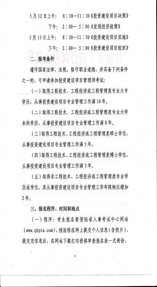 青海:2012年投资项目管理师职业水平考试报名工作的通知