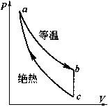 1.如图示一定量理想气体沿a→b→c变化时做功A =610J,气体在a、c两状态的内能差E -E =500J。设气体循环一周,所做净功为|A|,向外界放热为Q,则|A|和Q的值分别为:![]() |