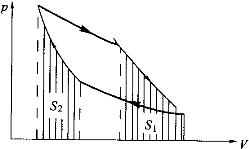 3.理想气体卡诺循环过程的两条绝热线下的面积大小(图中阴影部分)分别为S 和S ,则二者的大小关系是:![]() |