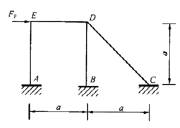 正确答案:C 解题思路:该题用力法求解为6次超静定,用位移法求解无侧移,仅E、D有2个角位移未知数,由于M 图为零,所以得E、D转角等于零,最终弯矩图为零,即结构无弯矩、无剪力,各杆件仅有轴力存在,结点可当成铰结点,利用结点法求得CD杆轴力为1.414F (受压),故正确答案选择C。 |