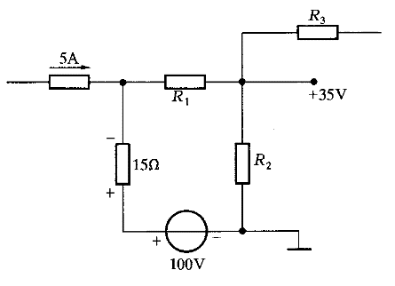 5.在图所示电路中,若15Q电阻上的压降为30V,极性如图所示,电阻R 的值应为( )。![]() |