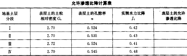 4.某土石坝坝基表层土的平均渗透系数为K1=10 cm/s,其下的土层渗透系数为K2=10 cm/s,坝下游各段的孔隙率如表所列,设计抗渗透变形的安全系数采用1.75,请指出下列( )选项段为实测水力比降大于允许渗透比降的土层分段。![]() |