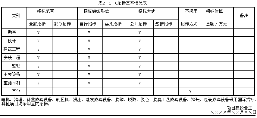 1.某国家重点项目,拟在内地某市郊区新征地上建设,占地24000㎡,总投资3亿元人民币,项目地址距离已经建好的公路网25km,不具备施工机械进场条件。项目建设涉及项目规划区域内的部分农舍拆除及厂内土地平整等前期工作,包括厂区建设及由国家公路干线至该厂的一条长25km的三级公路,及路边2m宽一条排水沟。项目审批核准部门已经对项目进行了核准。其厂区内建设项目概况如表2-1-5所示。![]() 规划区域内场地较开阔,单体建筑间隔均在10m以上。其中,办公区、辅助区与生产区之间有一条宽6m厂区主道路,路两边设有4m宽绿化带及地上照明设施。 工程建设管理模式采用勘察、设计、施工及特殊设备平行发包模式。批准的建设工期十分紧张,计18个月,需按照地上建筑工程同时开工,然后进行厂内管网、管线建设的程序组织,并在设备安装前组织设备的采购及进场安装。 该厂组织机构中,设有专门从事工程建设管理的机构基建处,其中财务、概预算各1人、工程及技术管理人员6人。基建处人员中,4人从事过粮油加工厂的建设及招标组织工作,对相关工作较熟悉,拟自行组织招标。 【问题】 1.本项目招标采购方案包括哪几部分内容?试拟订一份报项目审批核准部门核准的招标基本情况表。其中招标估算金额不用填写。 2.本项目招标至少需要划分多少个招标批次?给出其招标时间的先后次序。 3.本项目每个批次招标是否需要进一步划分标段或标包?为什么? |