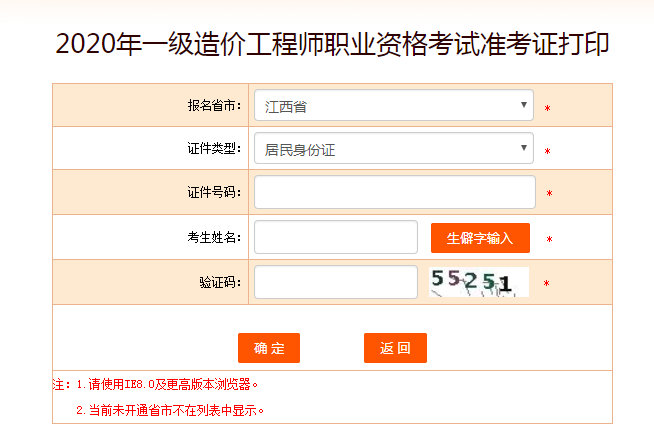 好消息!2020年中国人事考试网一级造价师工程师江西地区准考证打印入口开通了,请广大考生进入中国人事考试网打印。