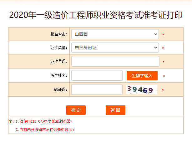 好消息!2020年中国人事考试网一级造价师工程师山西地区准考证打印入口开通了,请广大考生进入中国人事考试网打印。
