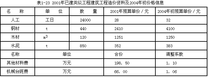 | 1.某地区2004年初拟建一工业项目,有关资料如下: 1.经估算国产设备购置费为2000万元(人民币)。进口设备FOB价为2500万元(人民币),到岸价(货价、海运费、运输保险费)为3020万元(人民币),进口设备国内运杂费为100万元。 2.本地区已建类似工程项目中建筑工程费用(土建、装饰)为设备投资的23%,2001年已建类似工程建筑工程造价资料及2004年初价格信息,如表1-23所示,建筑工程综合费率为24.74%。设备安装费用为设备投资的9%,其他费用为设备投资的8%,由于时间因素引起变化的综合调整系数分别为0.98和1.16。 3.基本预备费率按8%考虑。 ![]() 注:其他材料费是指除钢材、木材、水泥以外的各项材料费之和。 问题 1.按照表1-24的给定数据和要求,计算进口设备购置费用。 2.计算拟建项目设备投资费用。 3.试计算: (1)已建类似工程建筑工程直接工程费、建筑工程费用。 (2)已建类似工程建筑工程中的人工费、材料费、机械台班费分别占建筑工程费用的百分率(保留小数点后两位)。 (3)2004年拟建项目的建筑工程综合调整系数(保留小数点后两位)。 4.估算拟建项目工程建设静态投资。 ![]() |