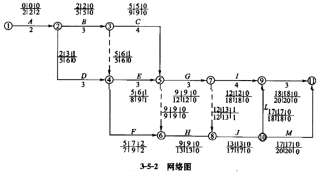 | 正确答案: 问题1: 事件1中,可以提出工期和费用的要求,因为承包商依据工程师提供的数据施工而导致供电出现故障。 事件2中,不可以提出工期和费用的要求,因为施工中因为具体机械使用改变而产生的费用应由承包商自行承担。 事件3中,可以提出工期和费用的补偿要求,因为设计变更是甲方的责任。 事件4中,不可以提出工期和费用的要求,因为冬季施工是一名成熟的承包商所能预见的问题,应当在投标报价时即做充分的考虑。 问题2: (1)确定原施工组织计划网络图的关键线路: 关键线路: A→D→E→G→I→K: ①→②→④→⑤→⑥→⑧→⑩→⑨→⑩ 事件1:B、C不在关键线路上,拖延时间没有超过总时差,故不能影响工期。 事件2:K在关键线路上,节省一天,故工期不需要补偿。 事件3:工期补偿为0天。 事件4:I、J在关键线路上,但由承包商自身原因造成的工期延长,不予以补偿。 综上所述,总工期不予以补偿。 问题3: 根据各项目调整后的工期,网络图调整如图3-5-2: ![]() 实际工期20d,拖后2d,罚款8000元。 问题4: 事件1:人工费补偿:(18+11)×12=348(元) 机械费补偿:1×615+2×310=1235(元) 事件2:不予以补偿。 事件3:H工作:20×95=1900(元) G工作:(200-20)×88-200×78=240(元) 事件4:I、J,在关键线路上,但由承包商原因造成的工期延长不予以补偿。 工程款变更合计: 348+1235+1900+240-8000=-4277(元) |