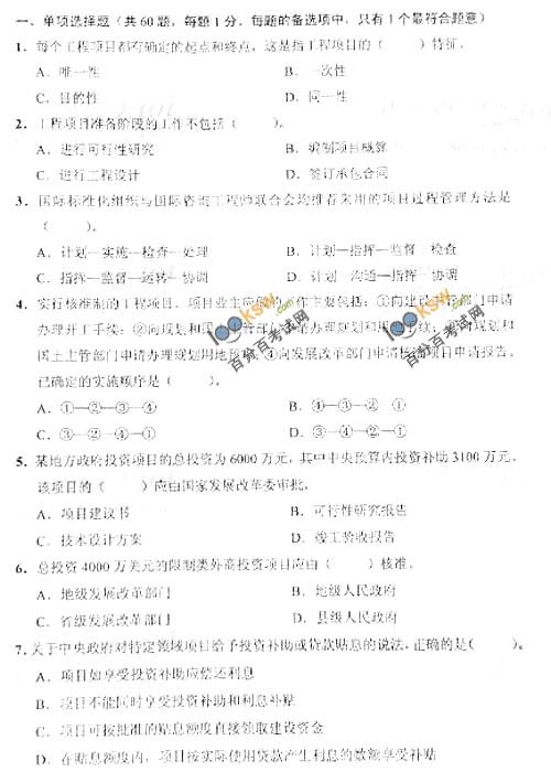 咨询工程师《工程项目组织与管理》历年真题精选(完整版)7