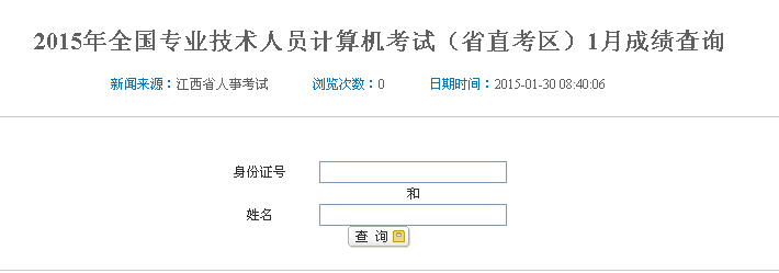 开通,考生可在1月30日之后登录江西人事考试网查询成绩,或者点击以下链接进入2015年1月江西职称计算机考试成绩查询入口。