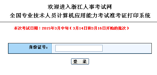 2015浙江职称计算机准考证打印入口开通 点击进入