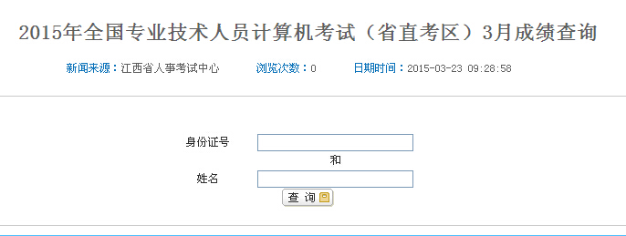 江西省直考区2015年3月职称计算机查分入口开通