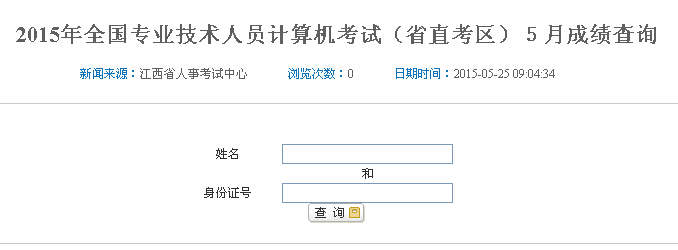 >>>>2015年5月江西职称计算机考试(省直考区)成绩查询入口