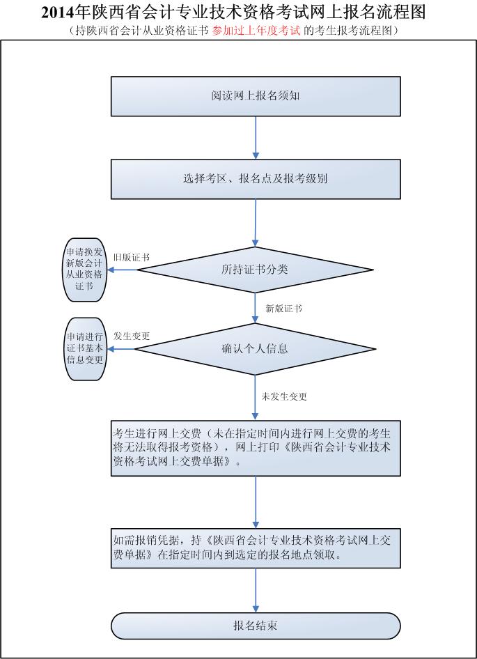 2014初级会计职称考试持陕西会计证参加过上年度考试的考生报考流程