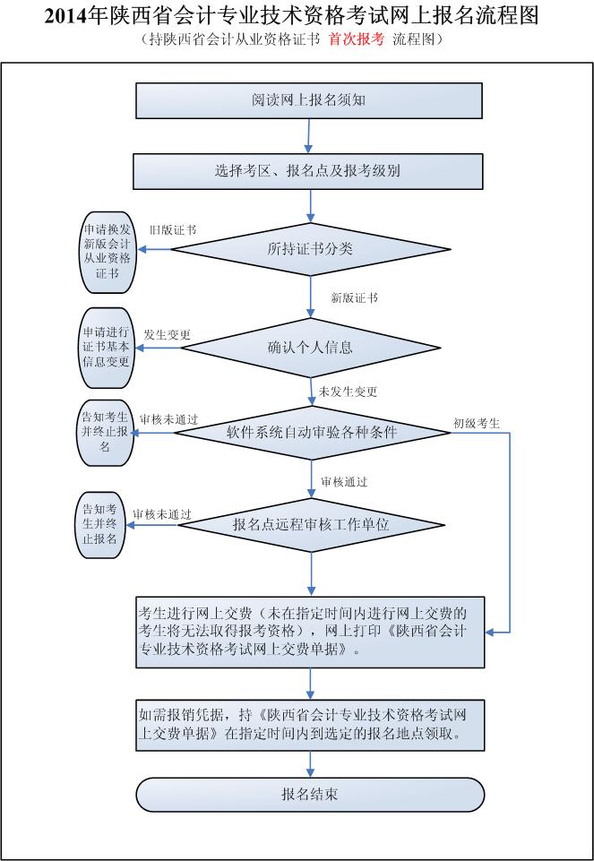 2014年初级会计职称持陕西省会计从业资格证书首次报考流程