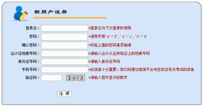 输入自己的登录名、登录密码、确认密码(与登录密码一致)、会计档案号码、身份证号码、手机号码(此信息十分重要,我们将通过短信平台向你发送有关考试的信息)、输入正确的验证码。核对以上信息后,请按“注册”按钮进行注册,系统进入报考页面,具体页面如下: