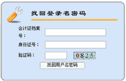 输入报名时自己填写的会计档案号、身份证号及正确的验证码,按“找回用户名密码”按钮,用注册手机编写短信“CXKJ身份证号”发送至10629500,短信平台将把你注册的用户名和密码信息发送至手机。此项服务免收服务费。