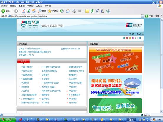 按“点击进行缴费”按钮,打开银联网银页面,如下图所示。