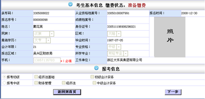 确认基本信息和报考信息无误后,点“下一步”按钮,进入如下页面: