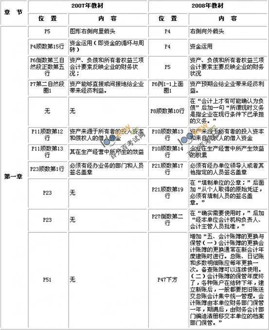 2007、08年《初级会计实务》教材变化对比(第一章)