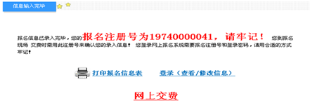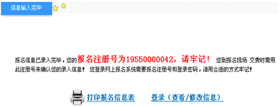 注册完毕之后,系统会给出您的报名注册号,请牢记,如图2.16.