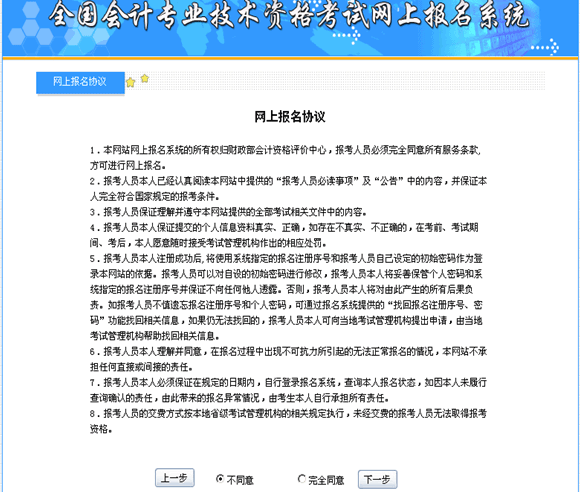 阅读网上报名协议,如图2.1: