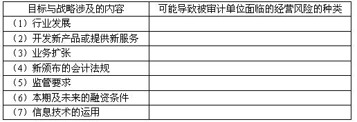 2.在了解被审计单位及其环境时,注册会计师决定了解被审计单位的行业状况,以识别与行业有关的重大错报风险;同时,还决定了解被审计单位是否存在与下列内容有关的目标和战略,以考虑相应的经营风险。请回答:(1)注册会计师主要应从哪些方面了解被审计单位的行业状况?(2)针对被审计单位目标与战略所涉及的下列每项内容,指出其可能导致被审计单位需要面临的相应的经营风险,填列在下表相应空格中: