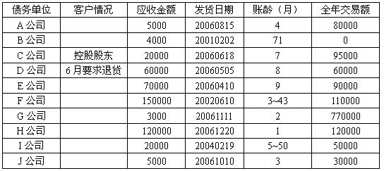 2.审查海通科技公司2006年度财务报表时,审计项目经理周琳根据以往经验确定该公司财务报表层次的重要性水平为50万元,并确定应收账款项目的重要性水平为10万元。在对应收账款项目实施审计程序之前,周琳编制了海通科技公司2006年12月31日的应收账款明细资料: