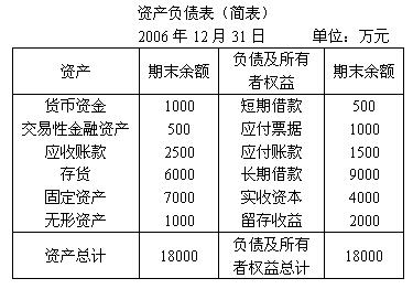 3. 某公司2006年的资产负债表(简表)如下: