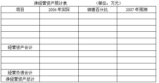 (2)根据调整的资产负债表填制净经营资产的预计表,计算资金总需求额;