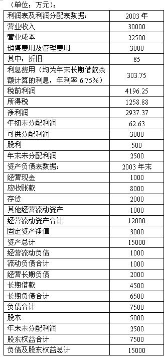 预计2004年―2005年的销售收入增长率为10%,2006年及以后销售收入增长率降低为8%。假设今后保持2003年的年末各项资产的周转率和资本结构(金融负债和股东权益)不变,经营流动负债和经营长期负债与销售收入同比例增长。各项营业成本费用与收入同比例增长,各项所得税率均为30%。企业的融资政策是:权益资本的筹集优先选择利润留存,不足部分考虑增发普通股,剩余部分全部派发股利;债务资本的筹集选择长期借款,长期借款的年利率以及计息方式均保持2003年的水平不变。目前至2005年加权平均资本成本为15%,2006年及以后年度降低为12%。