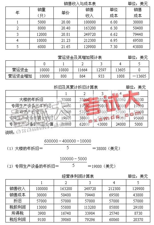 (1)项目评估费用25000美元属于沉没成本(即无关现金流量)不考虑。