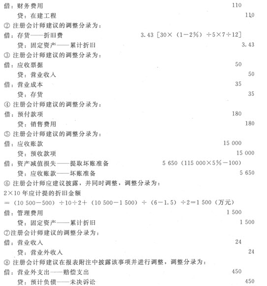2×10年应计入在建工程的借款利息=220×6÷12=110(万元)注册会计师的建议调整分录为: