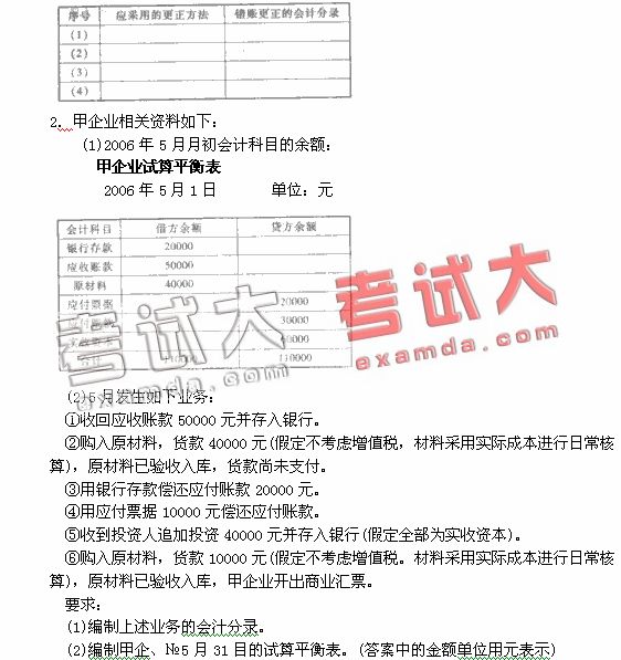 1.甲企业会计人员在结账前进行对账时,查找出以下错账: