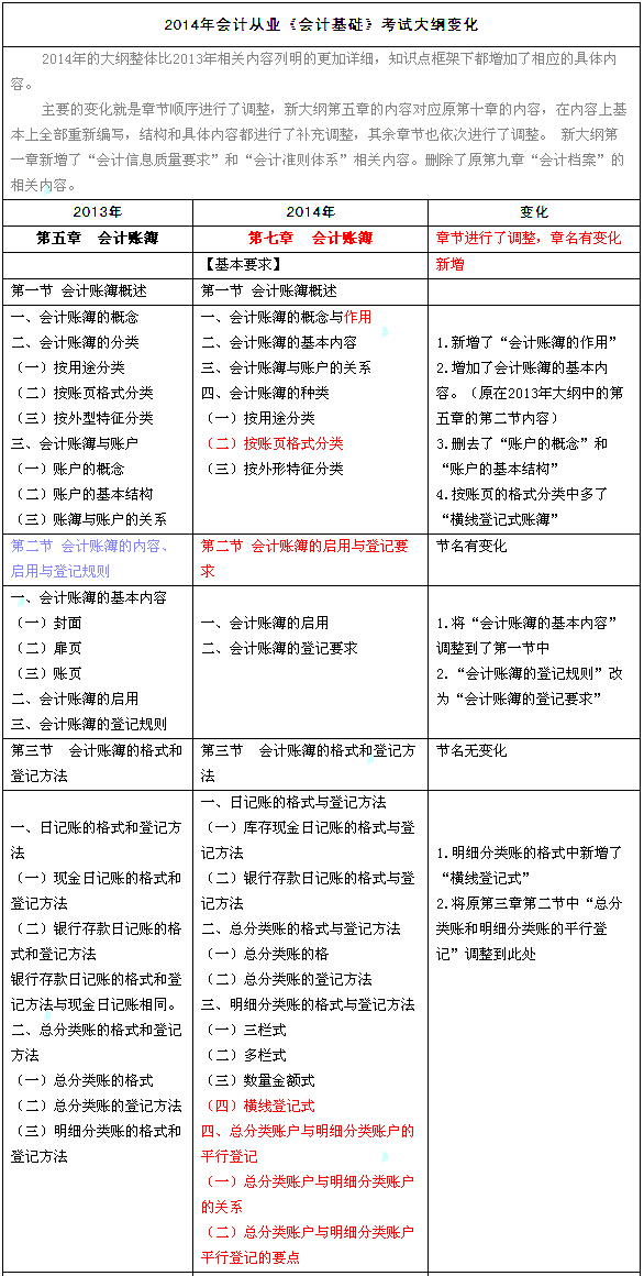2014会计从业资格《会计基础》新旧大纲对比分析