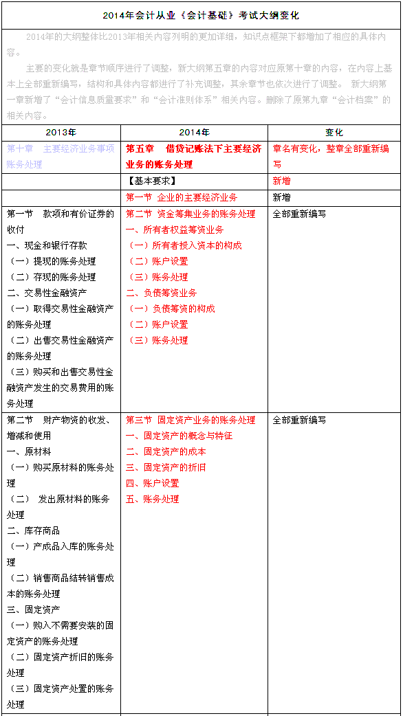 2014会计从业资格《会计基础》新旧大纲对比分析