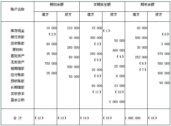 | 23.广州宏发公司编制的2008年5月份的试算平衡表如表4所示,请根据试算平衡原理,在标号后的空格内填上正确的数字,使试算平衡表平衡。(本题8分) 试算平衡表 表42008年5月31日 ![]() |