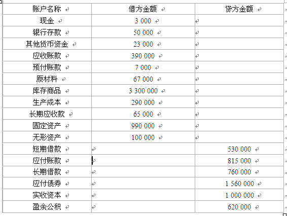 | 21.广东环球公司2008年5月份部分账户期初余额如表5所示,同时5月份发生以下经济业务。(本题10分) 要求: (1)编制各笔经济业务的会计分录。 (2)根据所给资料填列环球公司2008年5月31日的资产负债表。 表5 环球公司2008年5月初部分账户的期初余额 单位:元 ![]() ①用银行存款偿付前欠货款30 000元。 ②购买固定资产一台,价款210 000元,款项尚未支付。(不考虑增值税) ③结转本月份完工产品成本200 000元。 ④收回A公司所欠本公司货款300 000元,已存银行。 资产负债表 会企01表 编制单位:广东环球公司 2008年5月31日单位:元 ![]() |