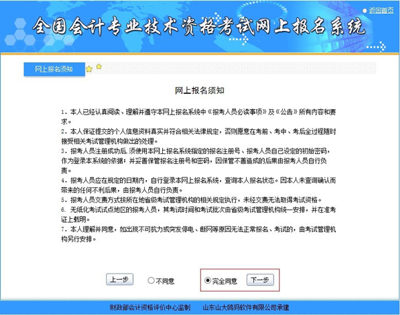 第二步:点击进入以后,查看网上报名须知,完全同意以后,点击下一步。