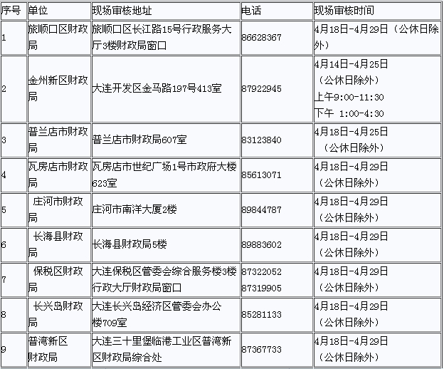 (二)其它区市县的报考人员到所在地财政局办理报名审核(详见全国会计专业技术资格考试大连考区报名确认点)。