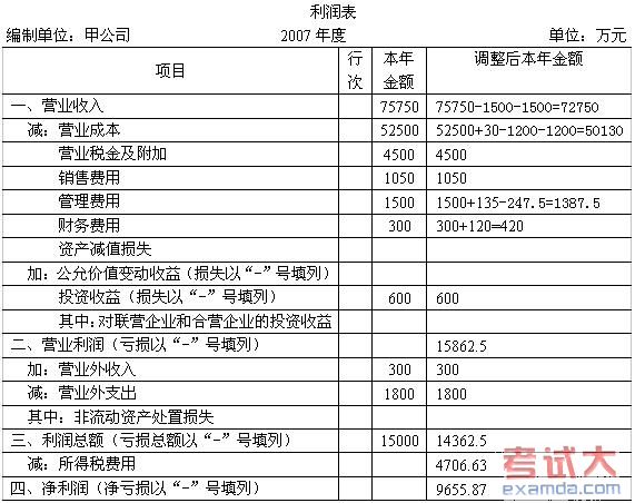 (5)根据上述调整,重新计算2007年度“利润表”相关项目的金额。